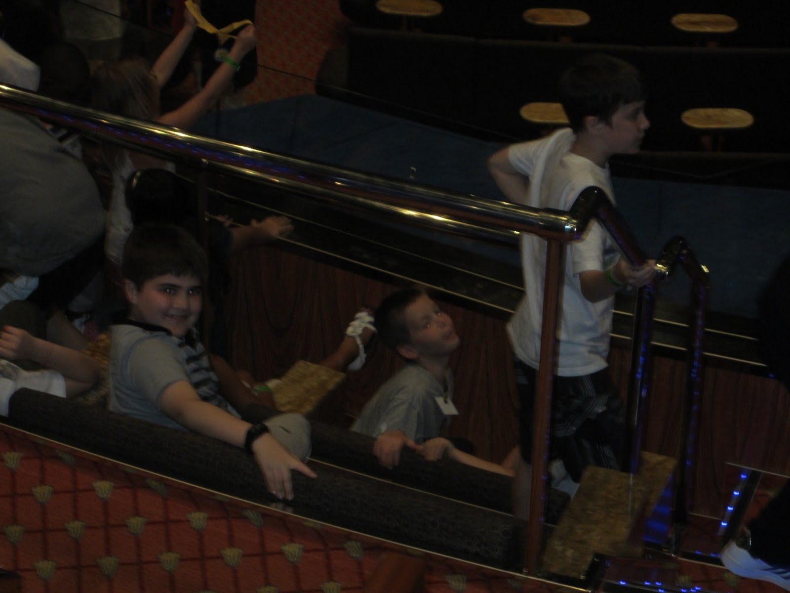 Later, we peeked in on the Ovation Theater. E was there with Camp Carnival. They watched the show "The Brits."